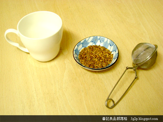首先, 先把工具準備好 , 杯子1個, 紀元農莊發芽玄米慢茶約20g, 濾茶器1個
